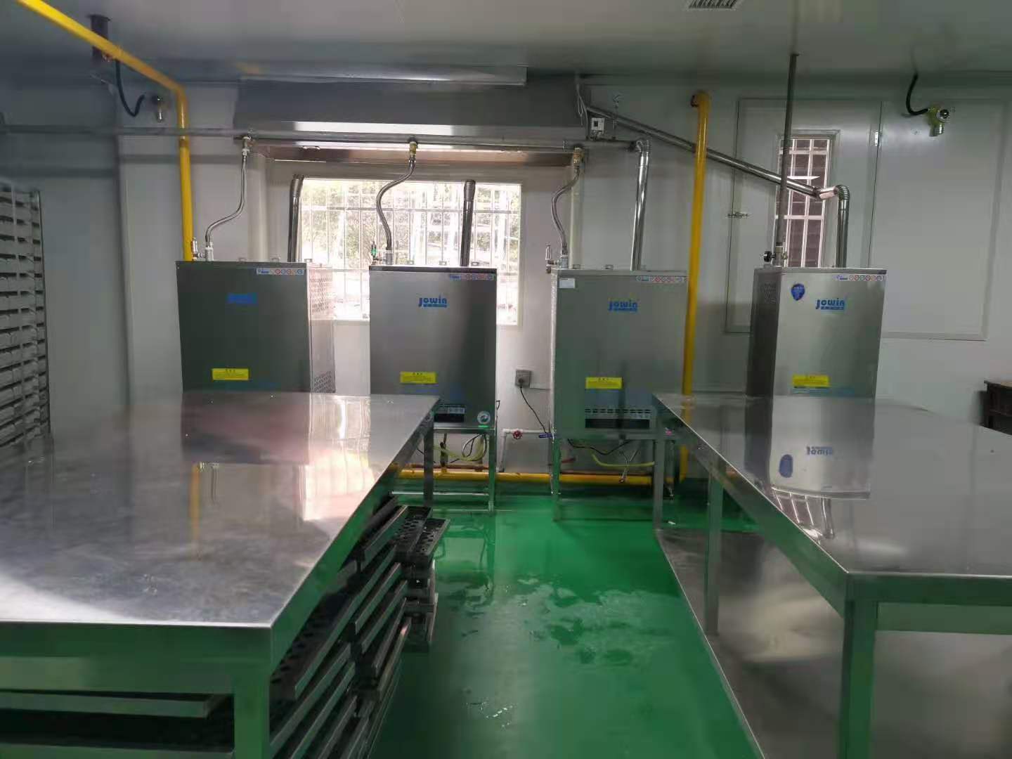 采用4臺卓益節能蒸汽機,附帶溫控裝置,可以直接監測醒發室內的溫度情況,溫控裝置和蒸汽發生器相連,實時傳輸信號,控制設備的暫停和啟動,使用起來非常方便,實現真正的全自動運行。