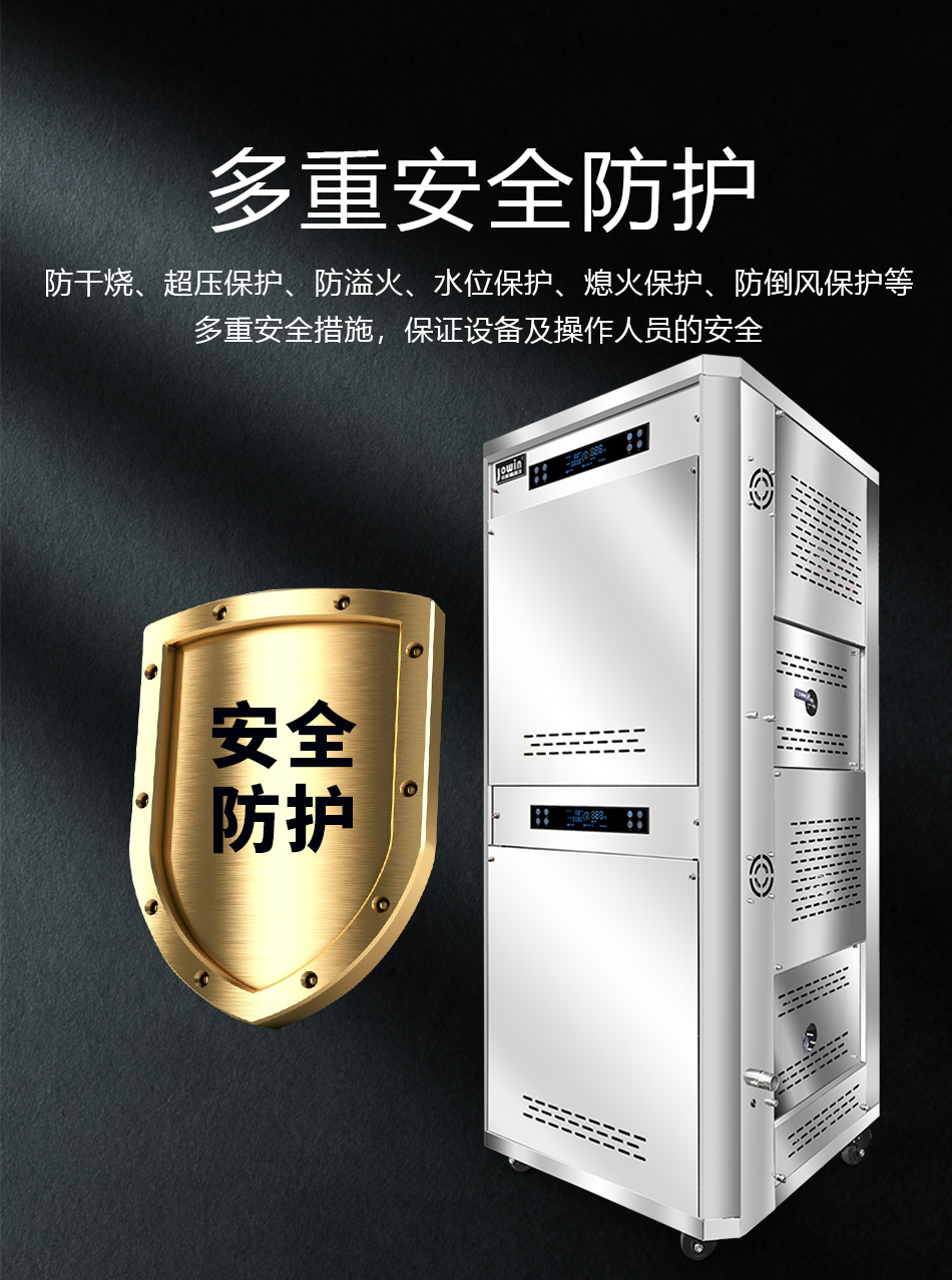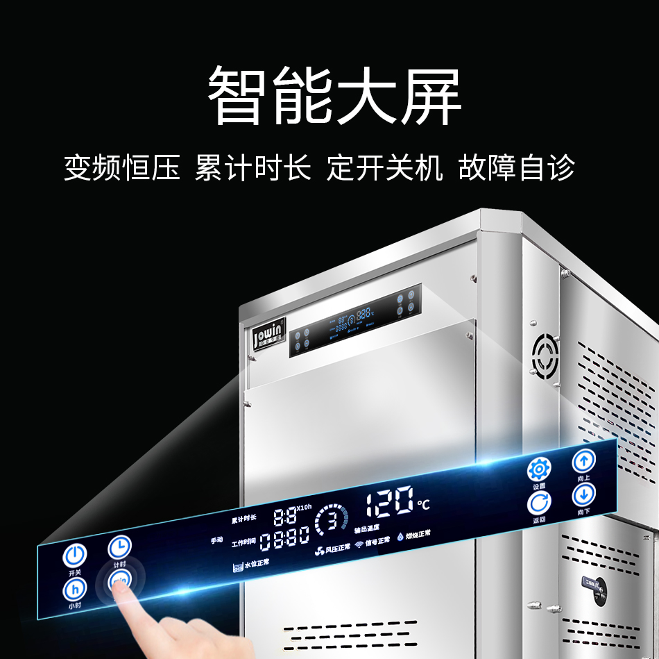 卓益商用系列燃氣節(jié)能高溫蒸汽機由燃氣蒸箱改進而來,整機由燃氣電磁閥(可人工調(diào)節(jié)控制火力大?。⒋髿馐交鹋湃紵鳌⒚}沖控制器、316不銹鋼板式換熱器、副水箱、強排風(fēng)機、顯示器、壓力控制模塊等要件構(gòu)成。運用最新燃燒換熱技術(shù)設(shè)計制造,一鍵操作,智能控制,使用液化石油氣、天然氣等氣體燃料,快持續(xù)產(chǎn)生大量蒸汽。設(shè)備自動運行,可單機或多機組合使用,是替代傳統(tǒng)鍋爐和傳統(tǒng)加熱設(shè)備或節(jié)能改造的最佳產(chǎn)品。