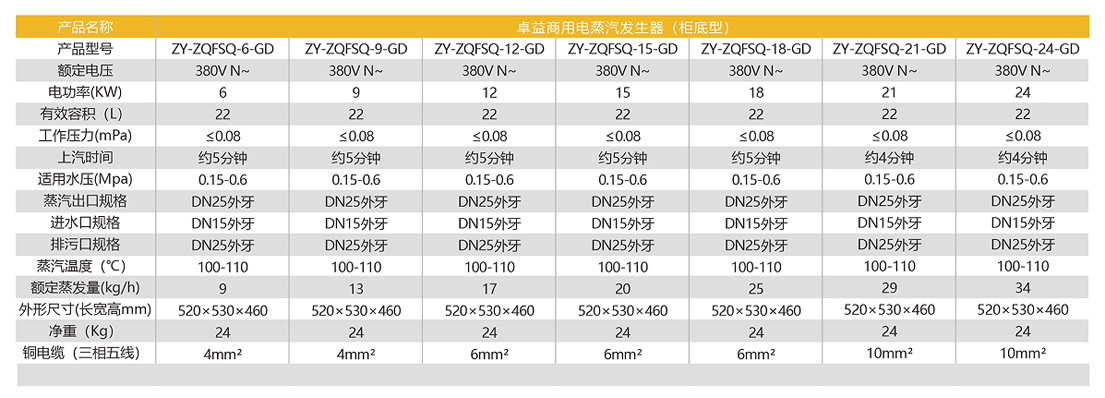 蒸汽量:9~34kg/h、電功率:6~24kw 、尺寸:520×530×460mm 蒸汽溫度:100~110℃